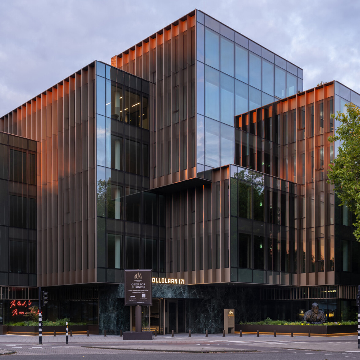 Apollolaan 171 is located in the middle of a neighborhood where the decorative brick architecture of the Amsterdam School – and Berlage in particular – sets the tone. With a transparent glass front that reflects the vastness of the surroundings and the imposing buildings, one side of Apollolaan 171 forms a modern counterpart to the historic architectural style of the early twentieth century.